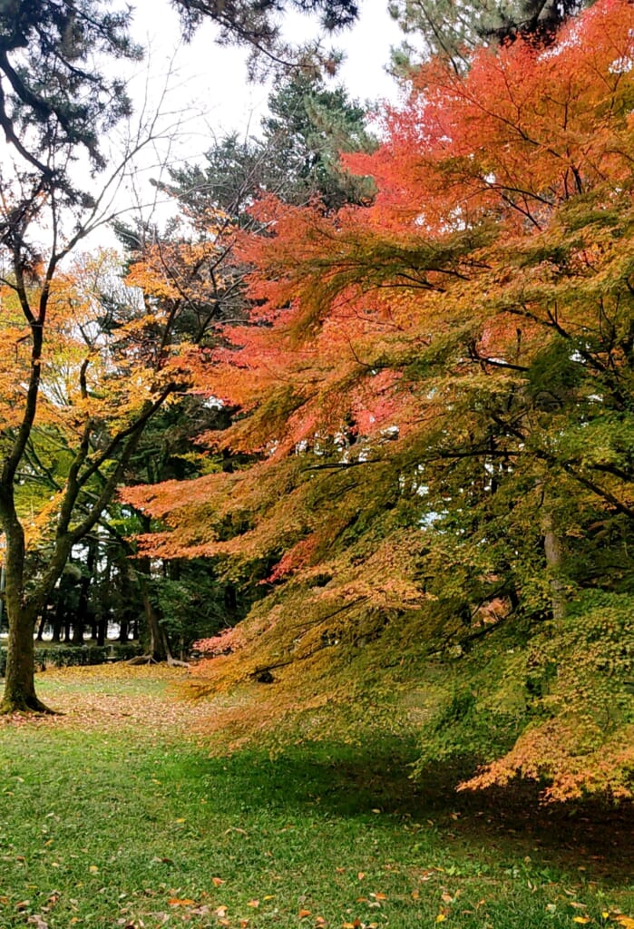 ベストな見頃: 例年、11月の中旬から下旬にかけてが最も美しく色づきます。青空を背景に黄金色に輝く姿はまさに圧巻です。イチョウ自体の高さは23mですが丘の上に立っているので実際はもっと高く見えます。そして幹回りは528cmあります。